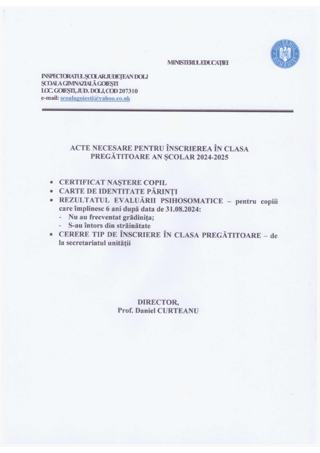 Adresa: Dolj, DN6B, Fântâni nr. 152 | Tel.: 0743 237 732 | E-mail: scoalagoiesti@yahoo.co.uk