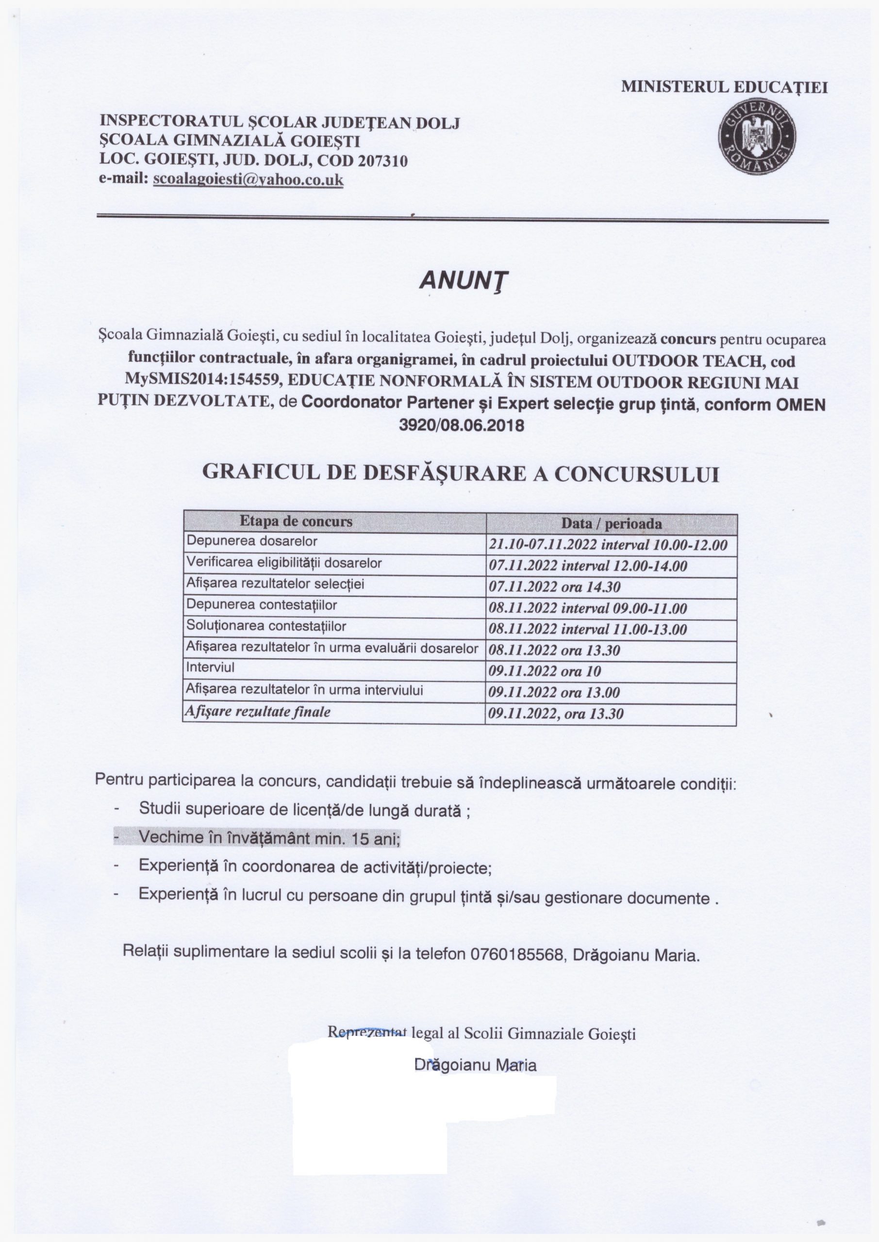 Adresa: Dolj, DN6B, Fântâni nr. 152 | Tel.: 0743 237 732 | E-mail: scoalagoiesti@yahoo.co.uk